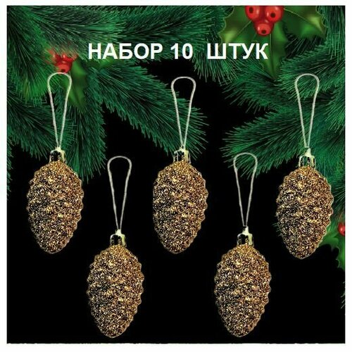 Новогодняя елочная игрушка, Шишка золотая - 10 штук по 6см, декор ёлки, полиэстер