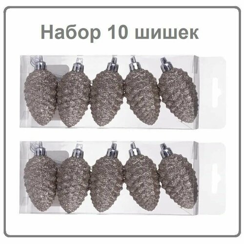 Новогодняя елочная игрушка, Шишка зол/серебро - 10 штук по 6см, декор ёлки, полиэстер