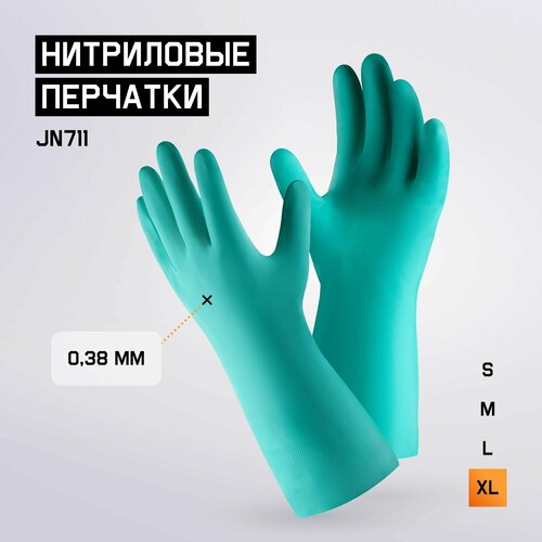 Нитриловые хозяйственные перчатки JN711 (XL) КЩС с хлопковым напылением внутри