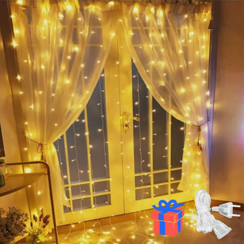 Комплект гирлянда + удлинитель / Гирлянда штора 3х2 м + удлинитель в подарок, желтый свет
