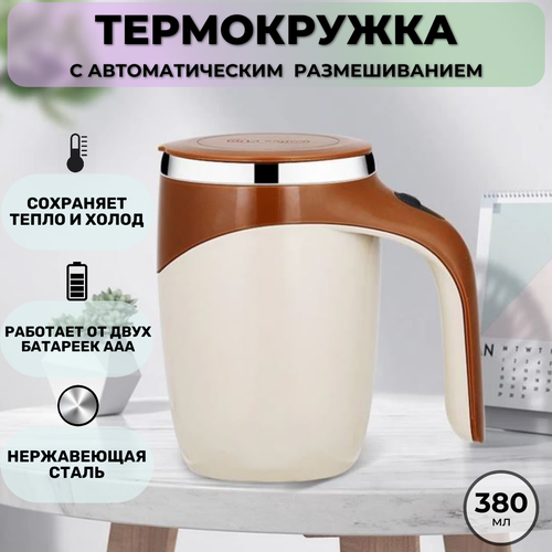 Термокружка с автоматическим размешиванием, коричневый цвет