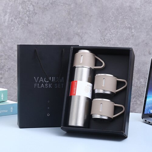 Термос вакуумный с двумя кружками / Подарочный набор / Объем 500 мл / Термокружка