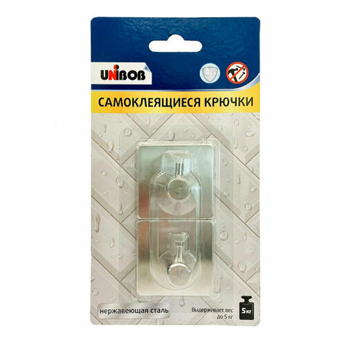 Крючок самоклеящийся UNIBOB из нержавеющей стали, 2 шт/упак_ИУ (96957), 1892765