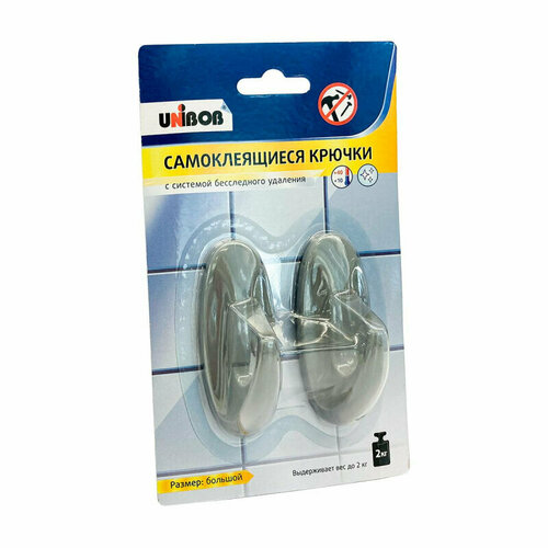 Unibob Крючок самоклеющиеся, серые, с системой бесследного удаления, 2 шт в упаковке, 2 уп. серый