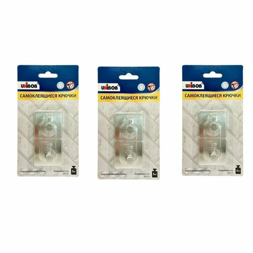Unibob Крючок самоклеющийся подвижный с системой бесследнего удаления, 3 шт в упаковке, 2 уп.