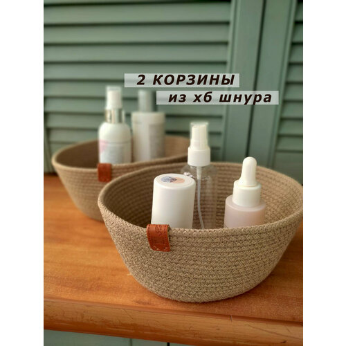 Корзина бежевая сшитая из хлопкового шнура для хранения предметов 2шт