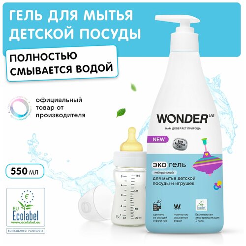 WONDER LAB Экогель для мытья детской посуды, игрушек и сосок с дозатором, 0.55 л, 0.6 кг