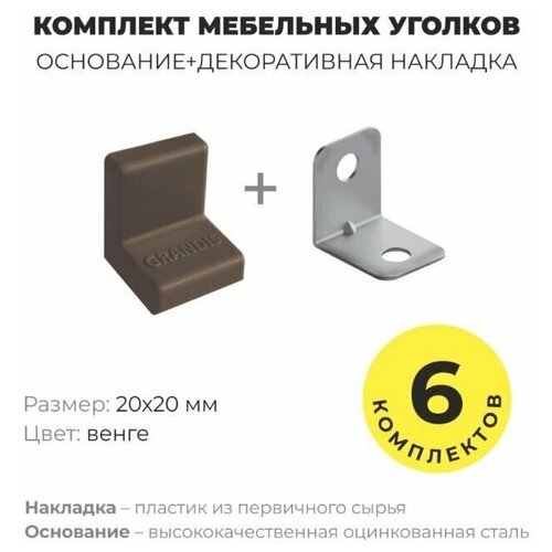 Уголок мебельный крепежный, 20*20 мм, с пластиковой крышкой, Grandis , цвет венге, комплект 12 шт