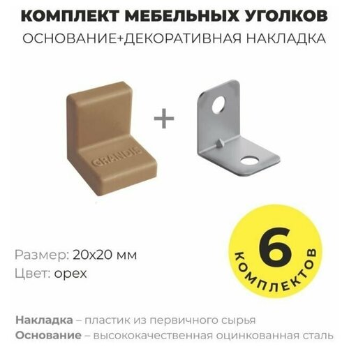 Уголок мебельный крепежный, 20*20 мм, с пластиковой крышкой, Grandis , цвет груша, комплект 40 шт