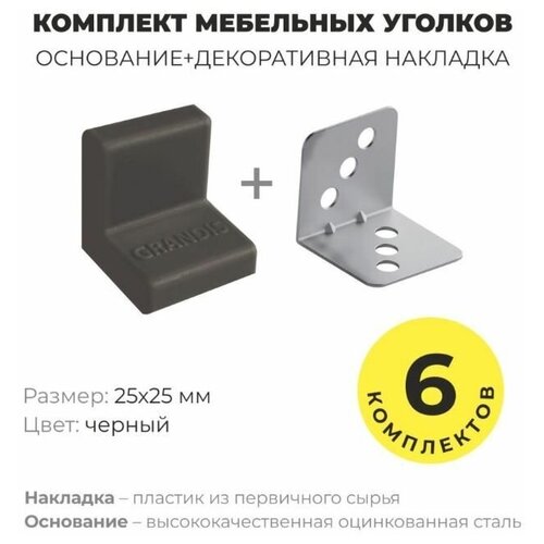 Уголок мебельный крепежный, 25*25 мм, с пластиковой крышкой, Grandis , комплект 12 шт