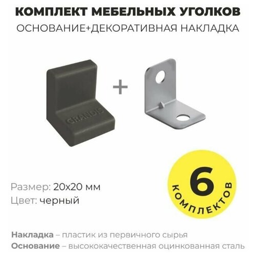 Уголок мебельный крепежный, 20*20 мм, с пластиковой крышкой, Grandis , комплект 12 шт