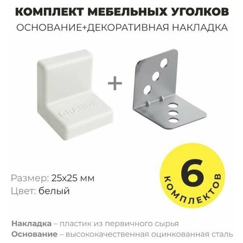 Уголок мебельный крепежный, 25*25 мм, с пластиковой крышкой, Grandis , комплект 12 шт
