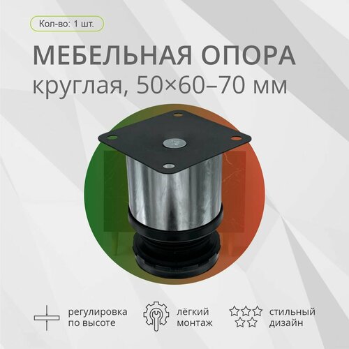 Опора мебельная, круглая, 50х60мм-70мм, 1шт