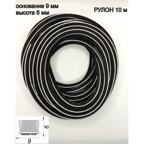 Уплотнитель щеточный, фетр 9x6 мм, самоклеящийся, фетровый, золотой золотистый, черный, серебристый, серый