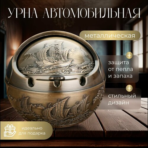 Урна для автомобиля, с крышкой, металл, цвет бронза