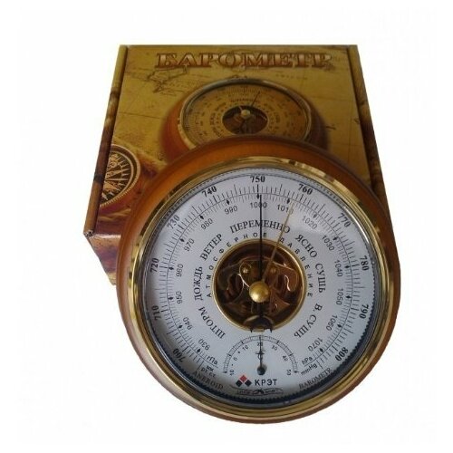 ОписаниеБытовой барометр создан для наблюдения за изменением погоды (в точности - атмосферного давления) в жилых помещениях. Такого рода барометры работают корректно в географических районах, расположенных не выше 300 метров над уровнем моря (подходит для Петербурга: высота над уровнем моря центра Петербурга - 1-5 метра, периферийных районов - не выше 31 метра). В барометрах используется мембранно-стрелочный механизм, работающий от воздействия атмосферного давления на анероидный чувствительный элемент.