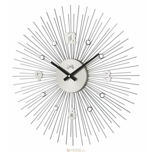 Настенные большие серебристые часы в форме солнца M1005А SM/Серебряные часы на стену/Часы солнце/Диаметр 47 см/Бесшумные часы в спальню/декоративные часы в гостиную