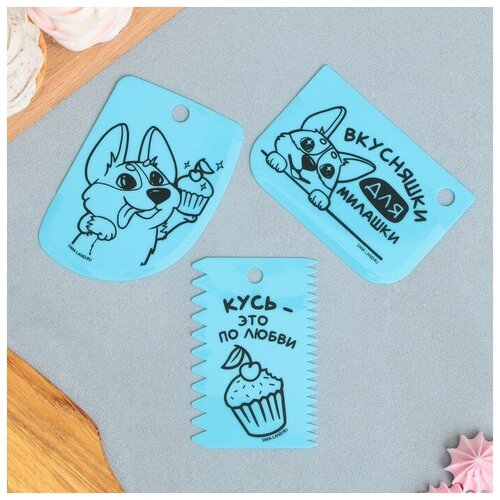 Набор кондитерских шпателей 11.5х8 см, 11.2х6.5 см, 10х7 см "Вкусняшки", 3 шт