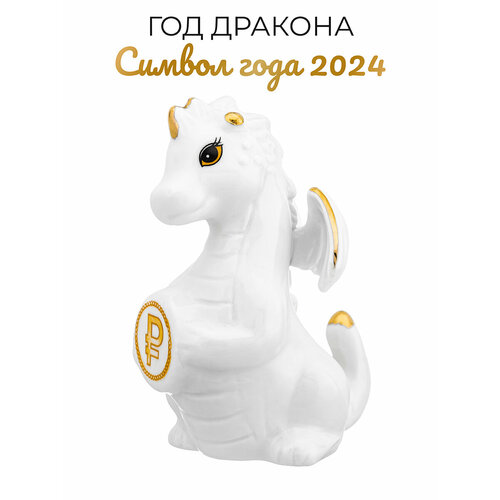 Фигурка декоративная Elan Gallery Китайский дракон 12х5х9 см, белая с золотом