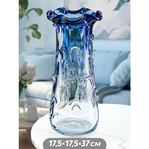 Ваза 3 л Elan Gallery 17,5х17,5х37 см сине-прозрачная-омбре, стекло