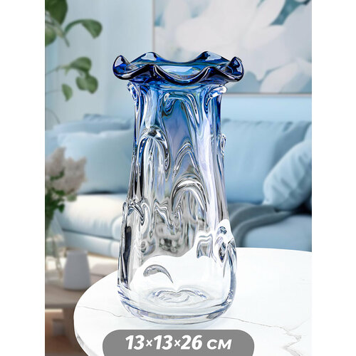 Ваза 1.1 л Elan Gallery 13х13х26 см сине-прозрачная-омбре, стекло