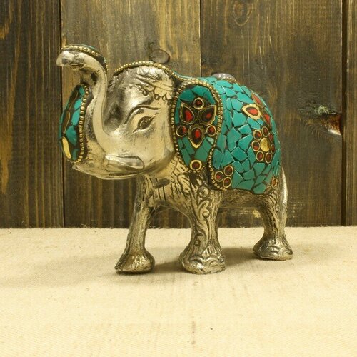 Слон металл с инкрустацией зеленый #2