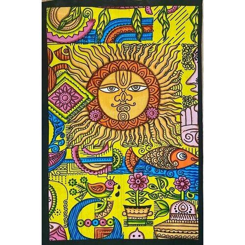 Гобелен хлопковый (панно, покрывало) из Индии разноцветный "Солнце" 210см на 140см #26