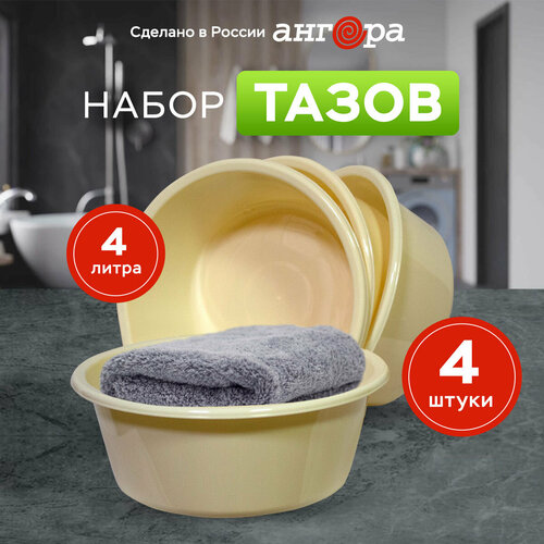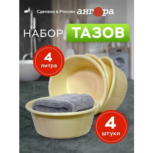 Набор хозяйственных тазов "Ангора" 4 литра, 4 штуки, кремовые