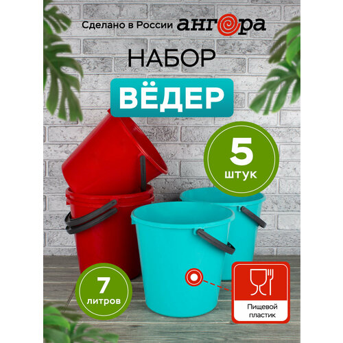 Набор ведер 7 литров Ангора, 5 штук, тиффани/красный