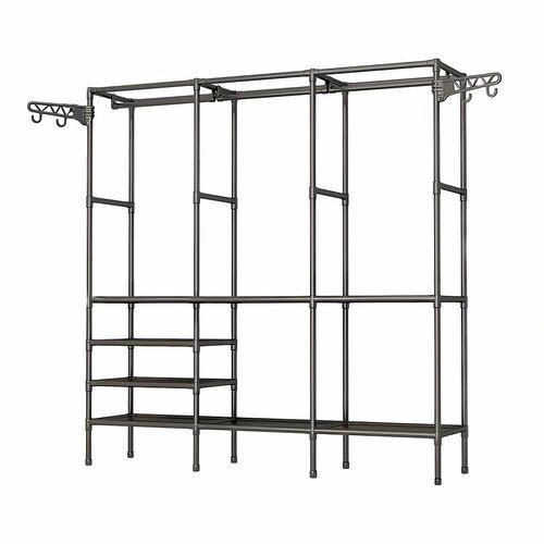 С её помощью вы сможете легко организовать свою одежду, обувь и аксессуары, освободив место в гардеробе. Перекладина-рейл для плечиков и два поворотных крючка обеспечат удобство при размещении и доступе к вашим вещам.