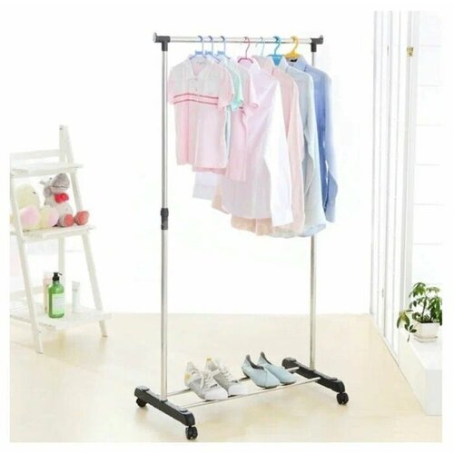 Напольная вешалка для одежды / Стойка для одежды / Вешалка на колесиках / Single Pole Telescopic Clothes Rack / Luoweite