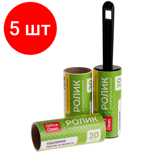 Комплект 5 шт, Ролик для чистки одежды OfficeClean, 5.6м, 20 слоев + 2 сменных блока 5.6м, европодвес