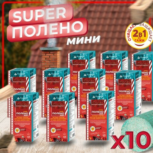Супер полено для очистки дымохода, чистки труб, каминов, печей от сажи Весёлый трубочист 950 гр набор 10 ШТ / SUPER полено