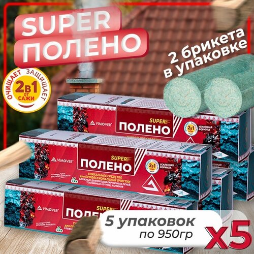 Супер полено для очистки дымохода, чистки труб, каминов, печей от сажи Весёлый трубочист 950 гр набор 5 ШТ / SUPER полено