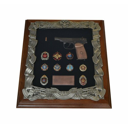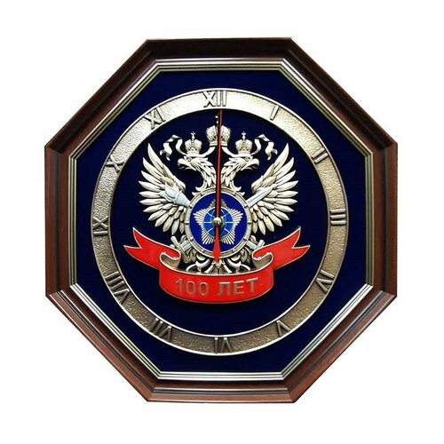 Эмблема с двуглавым орлом, щитом и мечом известна многим. И принадлежит она одному из самых влиятельных российских ведомств – Федеральной службе безопасности. В каждой детали эмблемы отражены сила духа, отвага, верность и преданность Отечеству!Материалы: Медь, Фон бархатное паспарту, Пластиковая восьмиугольная рама