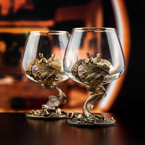 Основной материал: Бокал: стекло с золотым декорированием ,патинированная латунь ручная работа