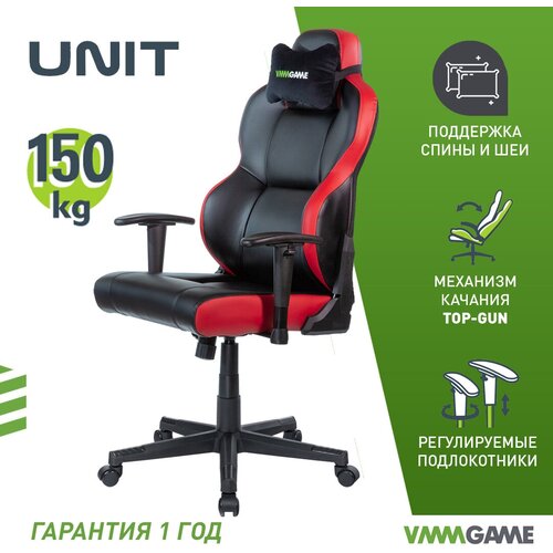 Игровое компьютерное кресло VMMGAME UNIT UPGRADE с регулируемой спинкой, кожа, Черно - красный