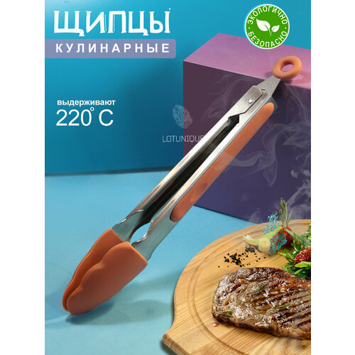 Кухонные щипцы с фиксатором, силиконовые, длина 27 см, пурпурно-розовый