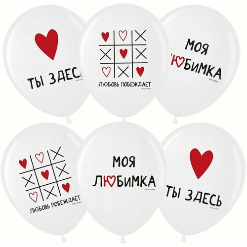 Шар латексный 12" "В хоккей играют настоящие мужчины" белый, пастель, 2ст, набор 25 шт.