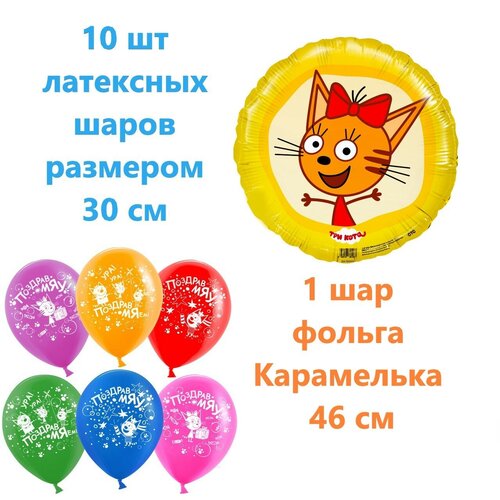 Шары ТРИ кота непременный атрибут праздника. Шары ярких цветов. Рисунок с 5 сторон. Размер шара 30 см. Шары изготовлены из натурального латекса. Предназначены для надувания как воздухом, так и гелием.