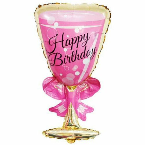 Воздушный шар из фольги. Фигура, Бокал, С Днем Рождения, Розовый (37'/94 см)