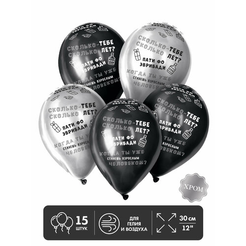 Шар латексный 12" «Когда ты станешь взрослым», набор 15 шт, цвета микс, хром