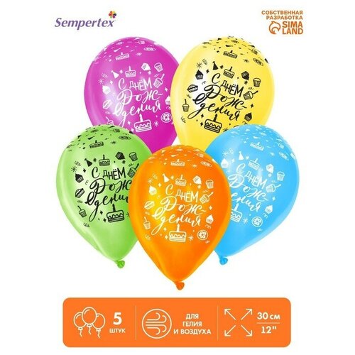 Шар воздушный латексный 12" Страна Карнавалия "С Днем рождения", набор 5 шт