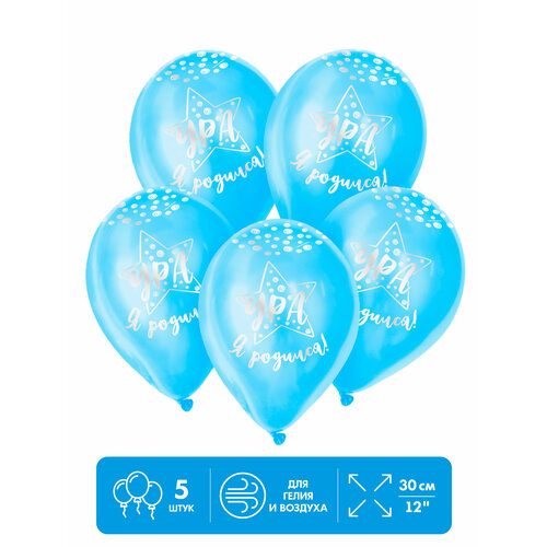 Шар латексный 12" «Ура, я родился», пастель, набор 5 шт