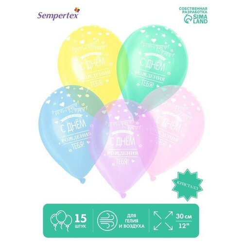 Sempertex Шар латексный 12" «С Днём рождения», прозрачный, набор 15 шт, цвет жёлтый