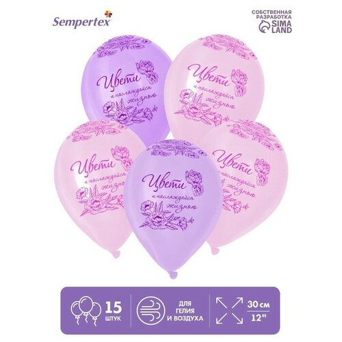 Шар латексный 12" «Цвети и наслаждайся», пастель, набор 15 шт, цвета розовый, сиреневый
