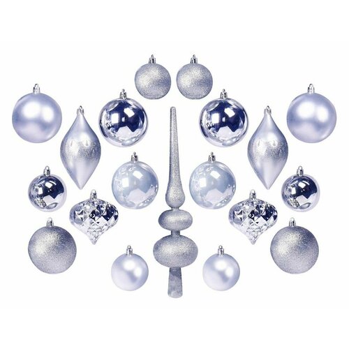 Набор ёлочных украшений оттенки праздника, пластик, серебряный, 5-12 см (31 шт.), Koopman International CAN207210