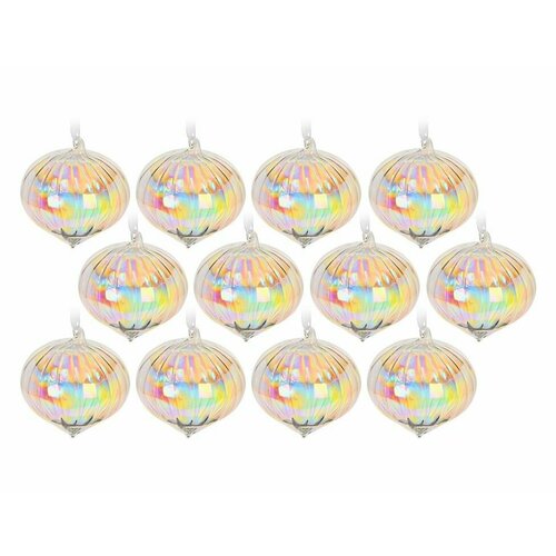 Набор стеклянных ёлочных шаров радужные луковки, прозрачно-перламутровые, 8 см (упаковка 12 шт.), Koopman International ABR705150