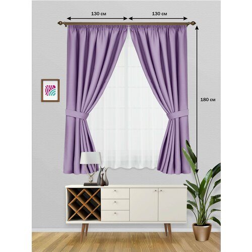 ВсеТканиТут Шторы блэкаут Bacio короткие на кухню / на дачу / для спальни / сиреневый / 260х180 см (2 шт-130x180 см)