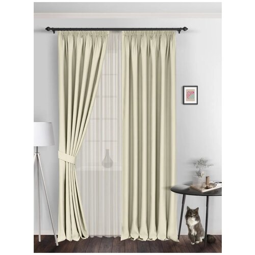 Комплект штор ВсеТканиТут / блэкаут Bacio / молочный / 600 х 250 см ( 2 шт - 300 х 250 см )